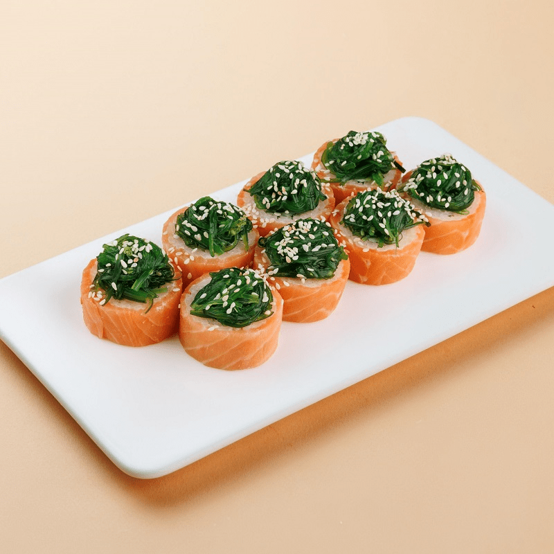 лосось, сыр, салат чука.